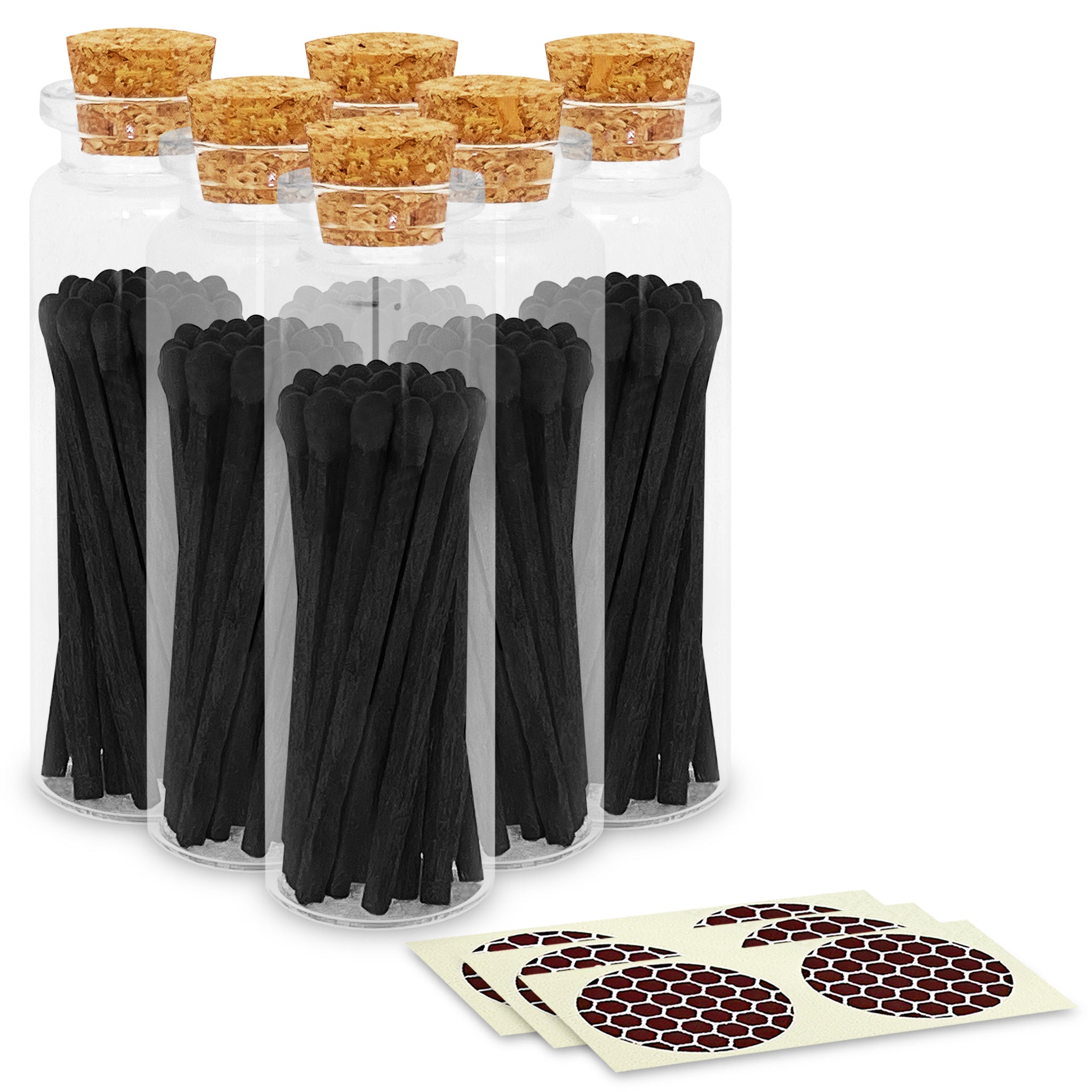 4" All Black Safety Matches in a Large Cork Top Jar
