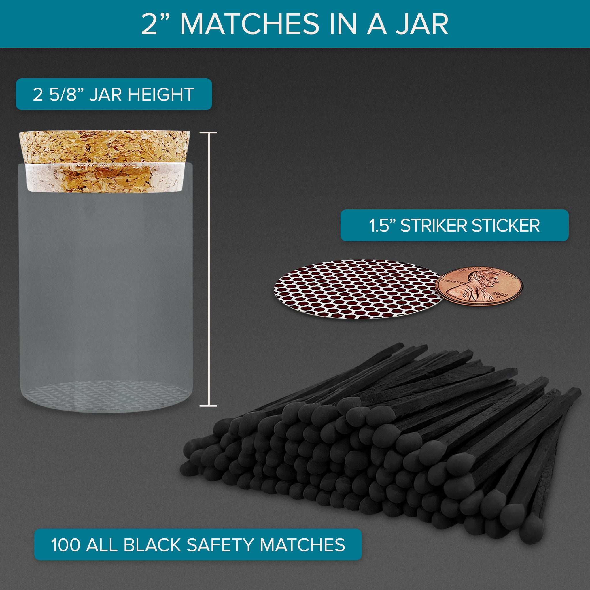 2” All Black Safety Matches in a Cork Top Jar