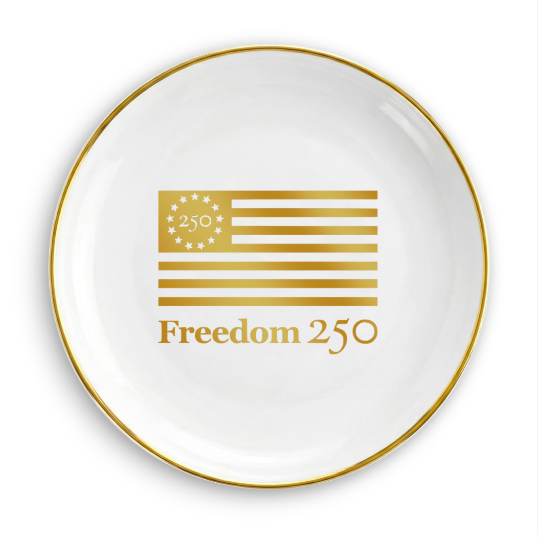 Designed to mark a once-in-a-generation milestone, these Freedom 250 trinket dishes offer a refined way to commemorate 250 years of American history. Crafted from smooth ceramic and finished with a real gold rim, each dish balances decorative detail with everyday function.