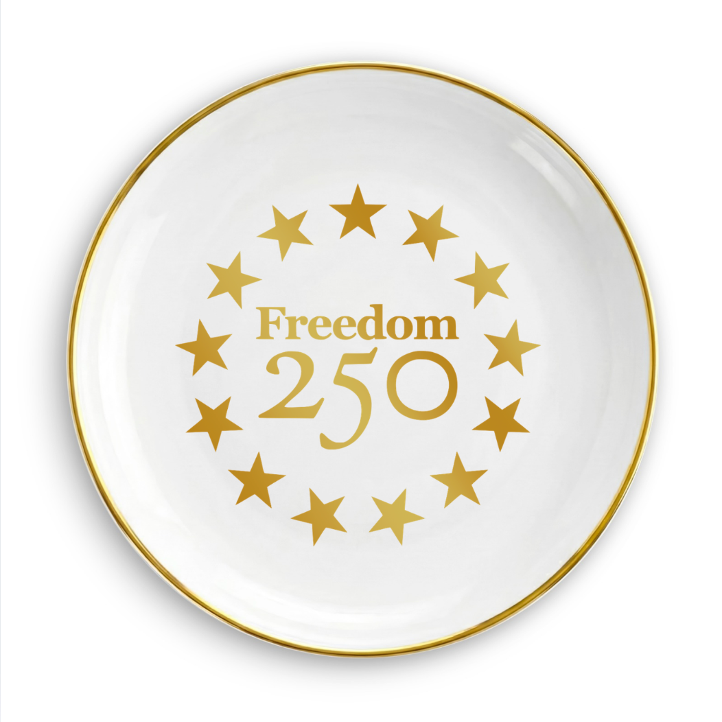 Designed to mark a once-in-a-generation milestone, these Freedom 250 trinket dishes offer a refined way to commemorate 250 years of American history. Crafted from smooth ceramic and finished with a real gold rim, each dish balances decorative detail with everyday function.
