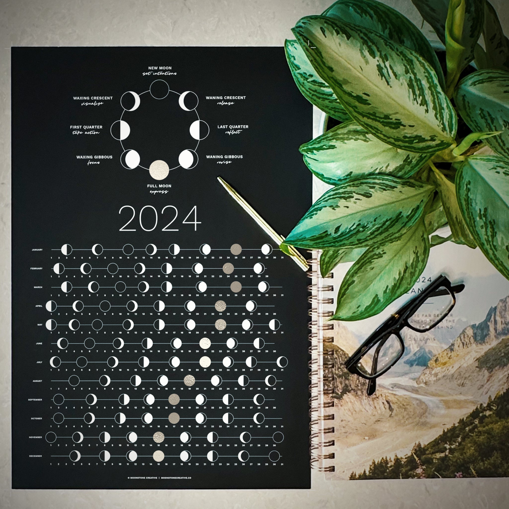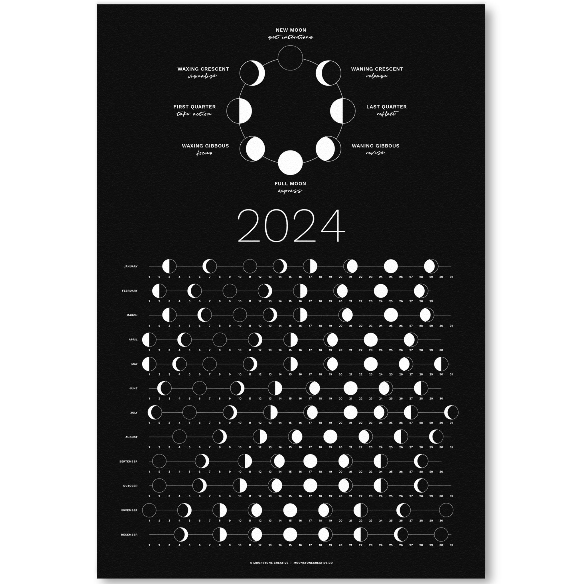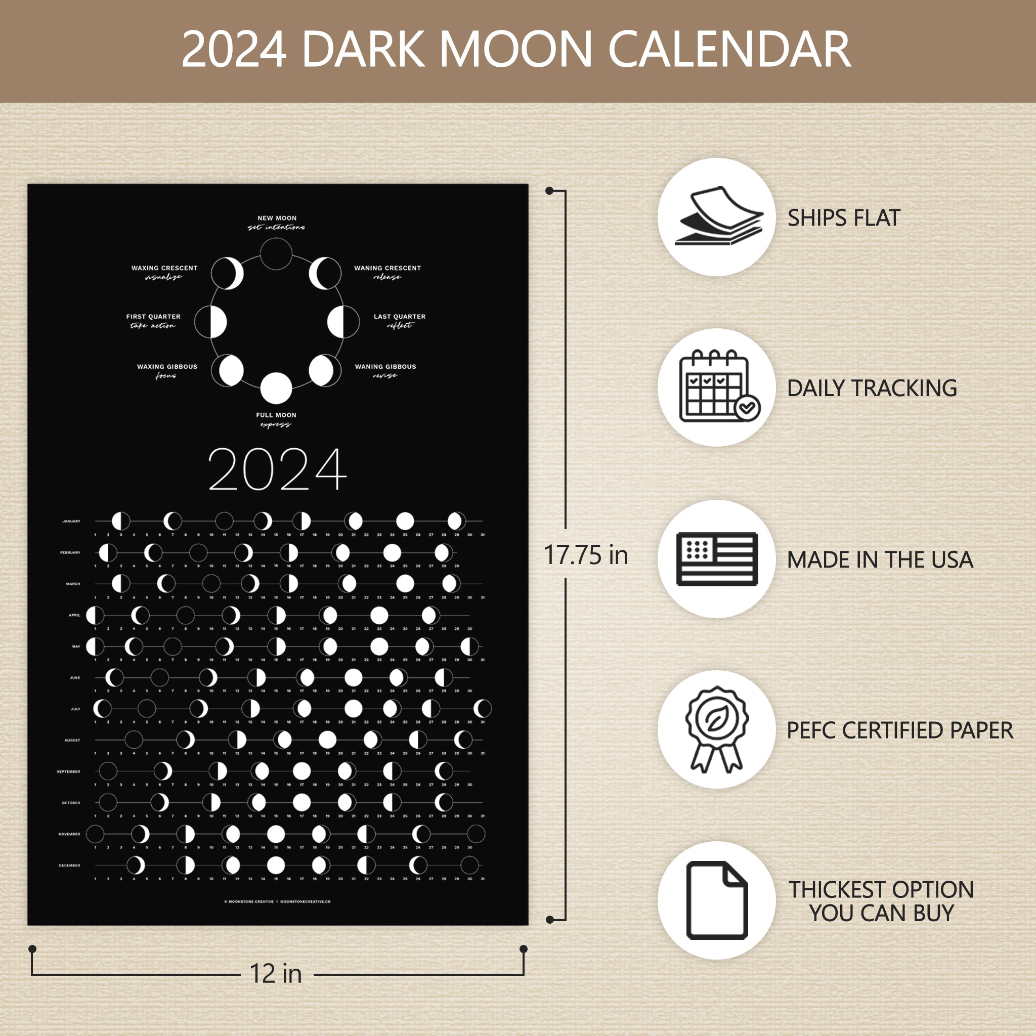 2024 Moon Phase Calendar - Dark (SHIPS FLAT)