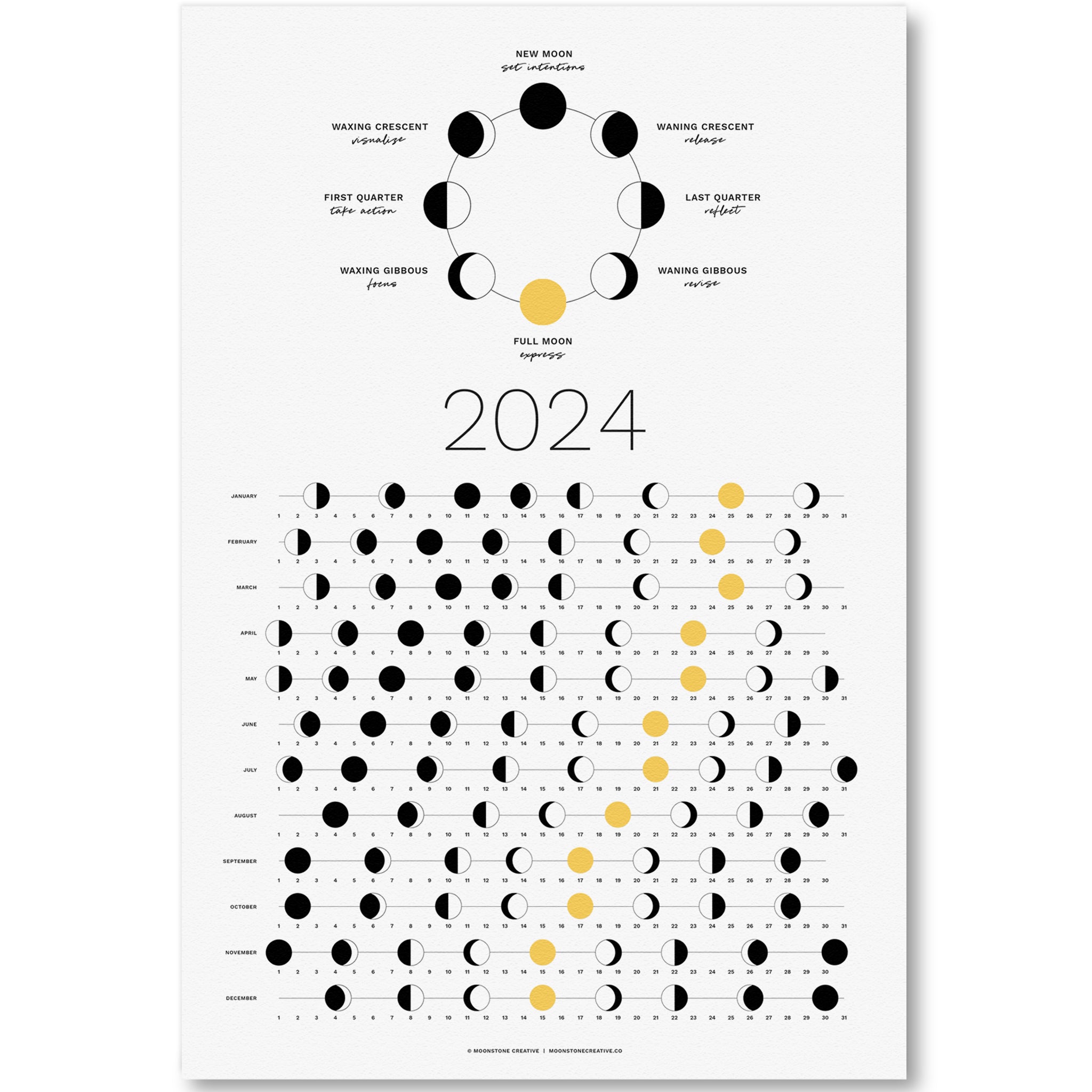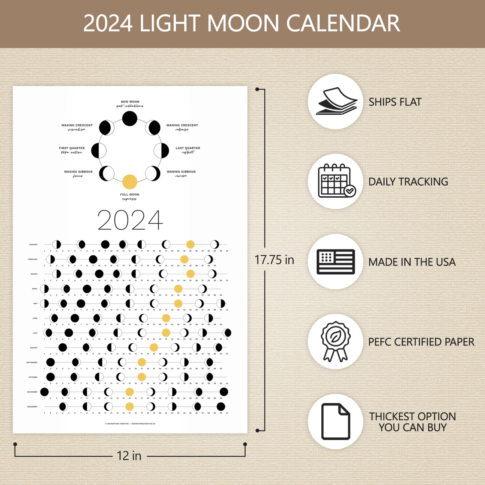 2024 Moon Phase Calendar - Light (SHIPS FLAT)
