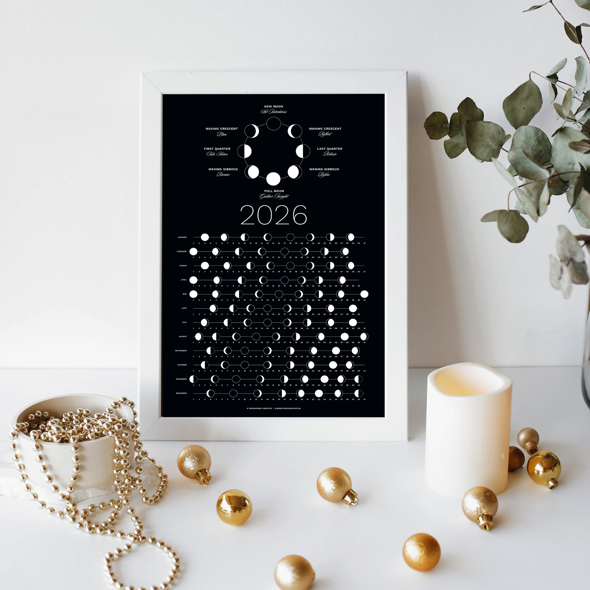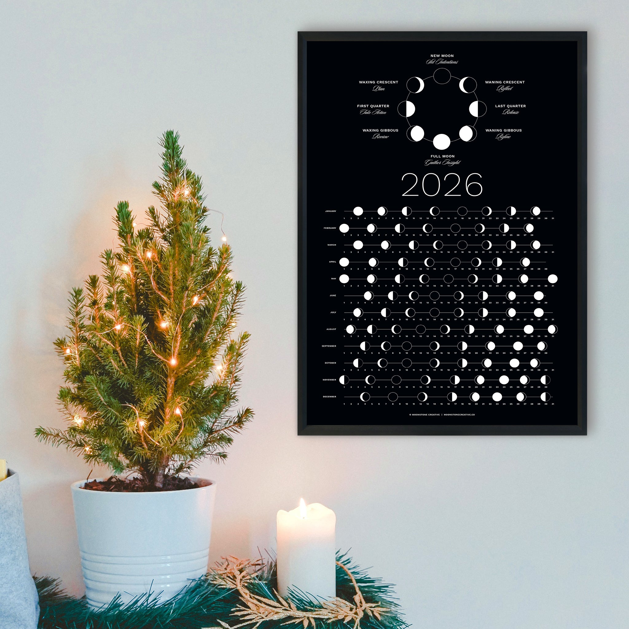 2026 Moon Phase Calendar - Dark (SHIPS FLAT)