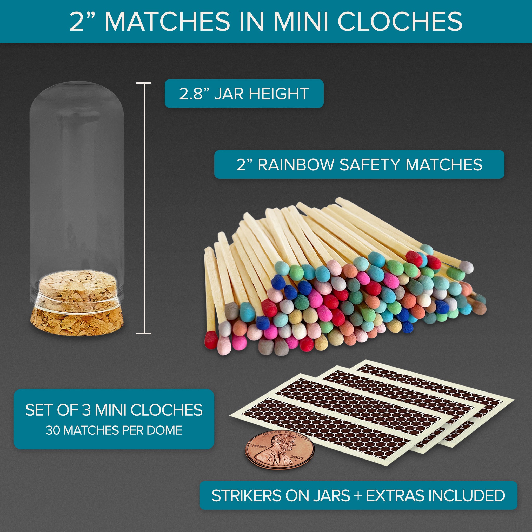 2" Rainbow Safety Matches in 3 Mini Cloches