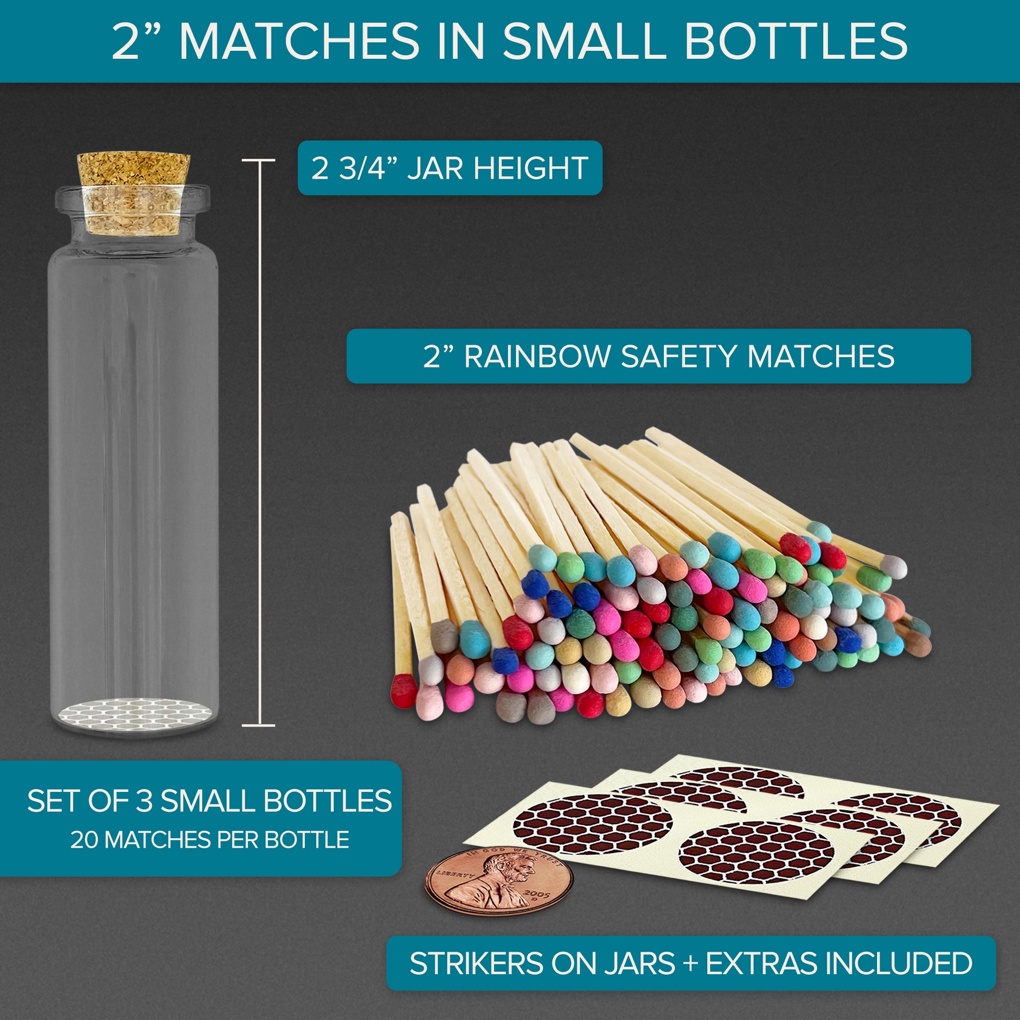 2” Rainbow Tip Safety Matches in 6 Small Bottles