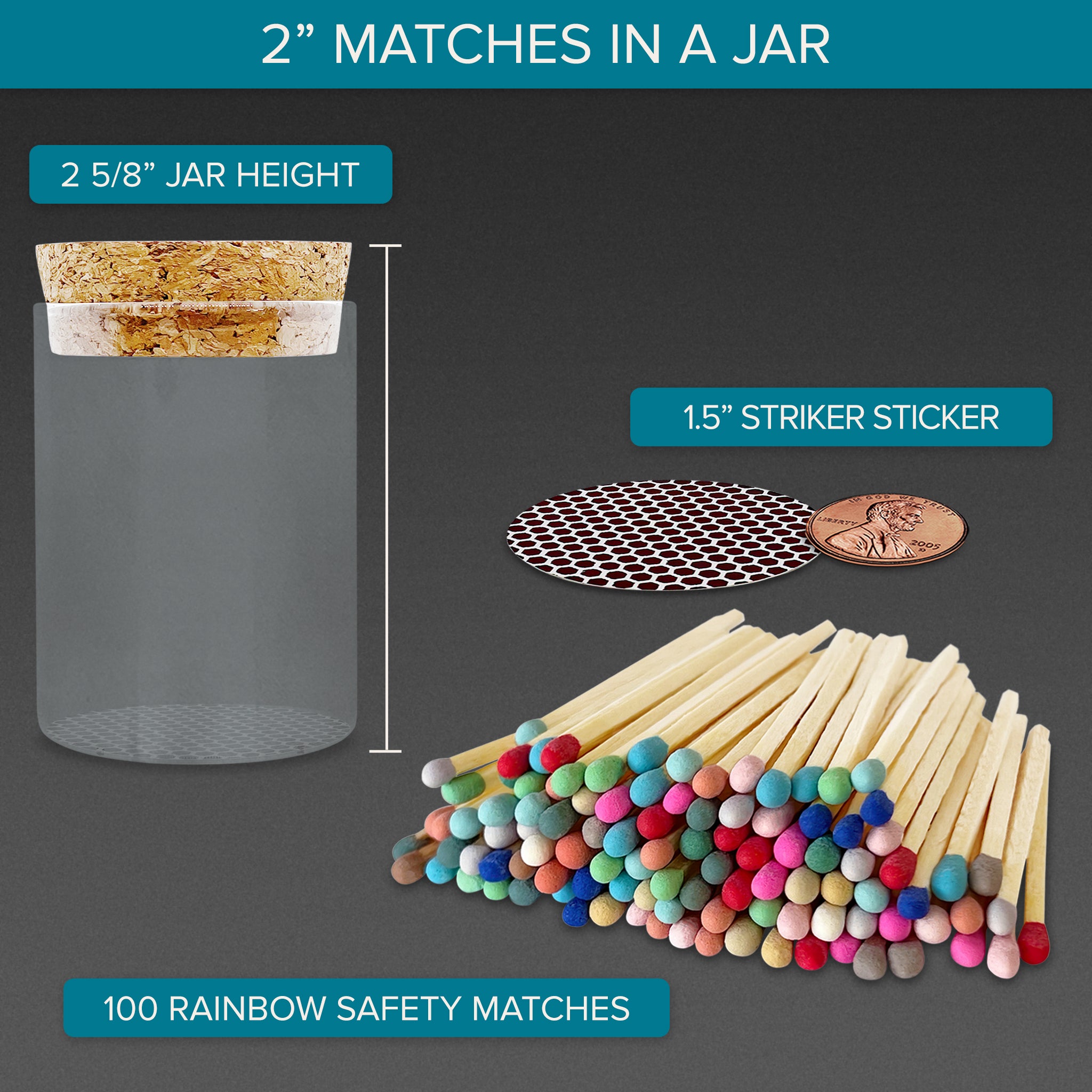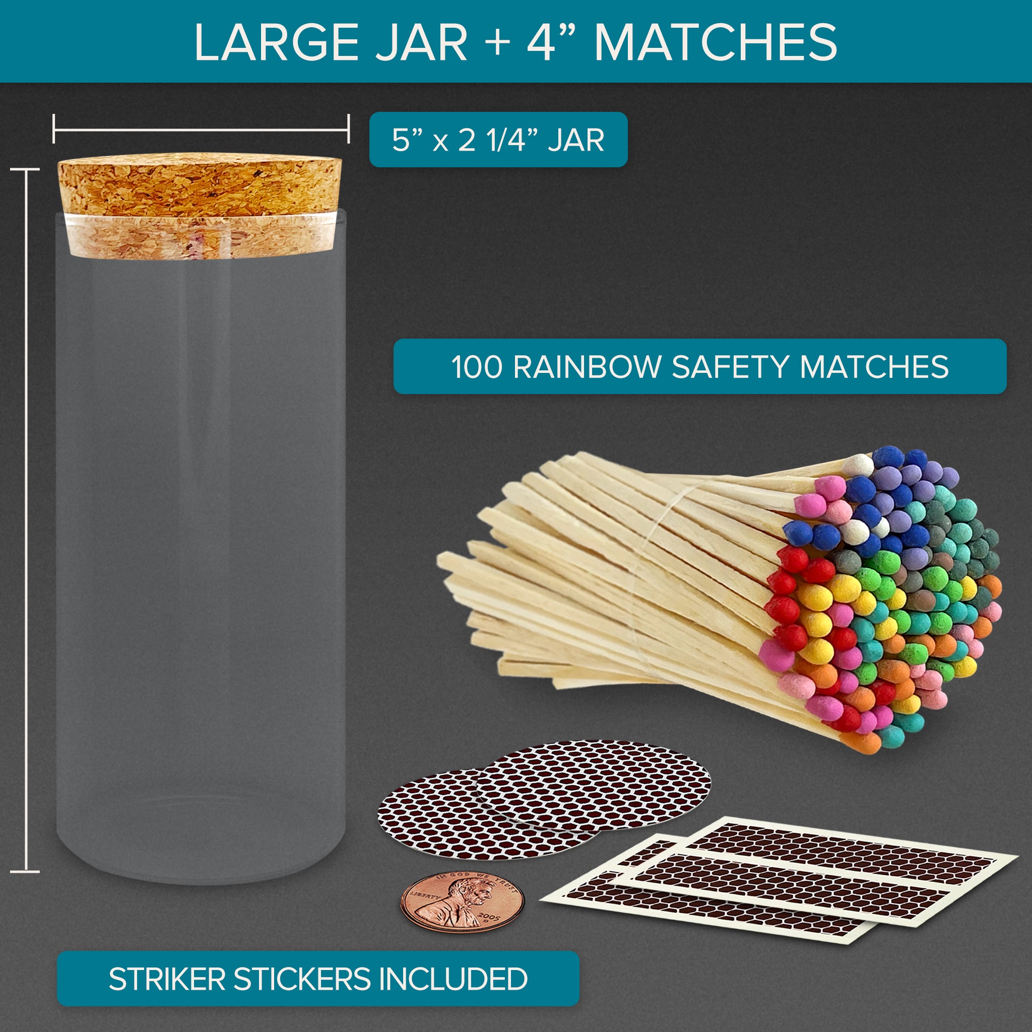 4" Rainbow Safety Matches in a Large Cork Top Jar