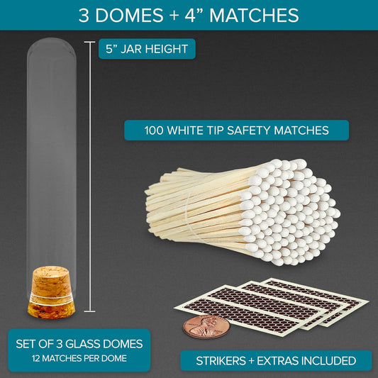 4” Wholesale Safety Matches in Premium Large Glass Cloche