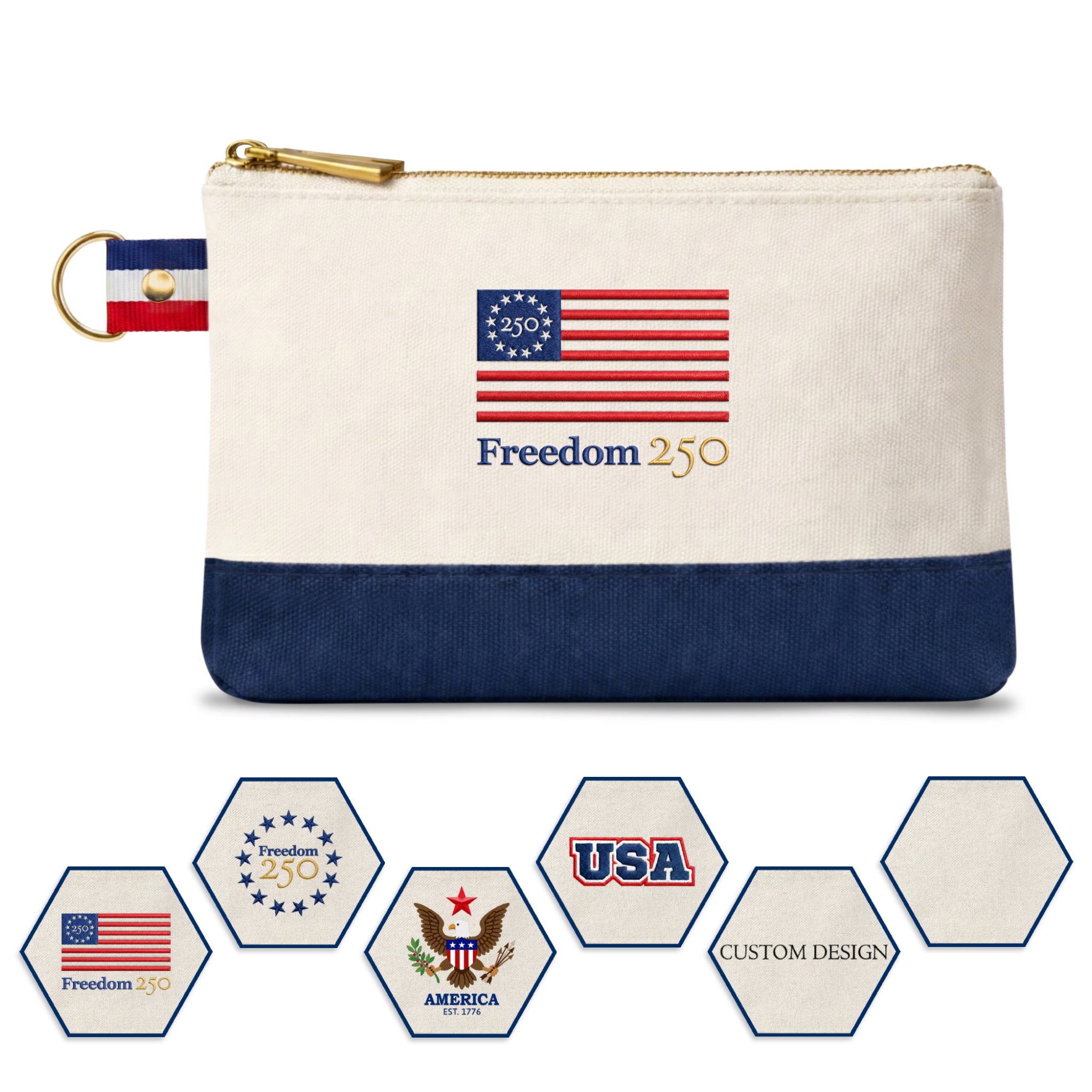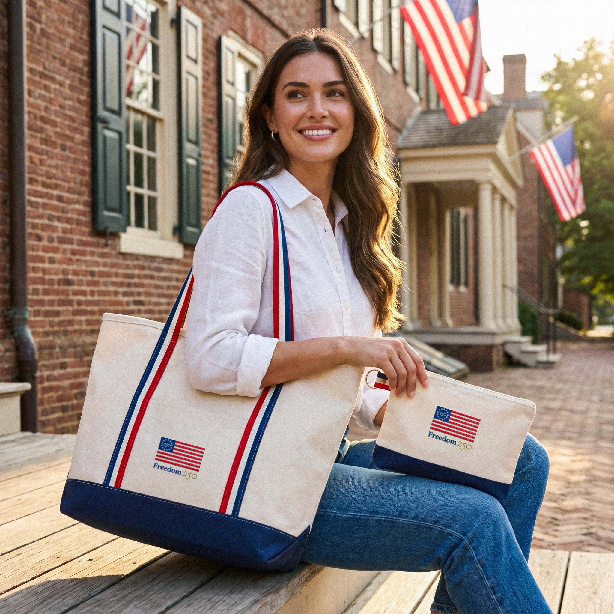 Designed to mark a once-in-a-generation milestone, this Freedom 250 canvas pouch blends meaningful design with everyday functionality. Made from durable canvas with a reinforced bottom panel, it’s built to be used daily—whether carried on its own or tucked inside a tote.