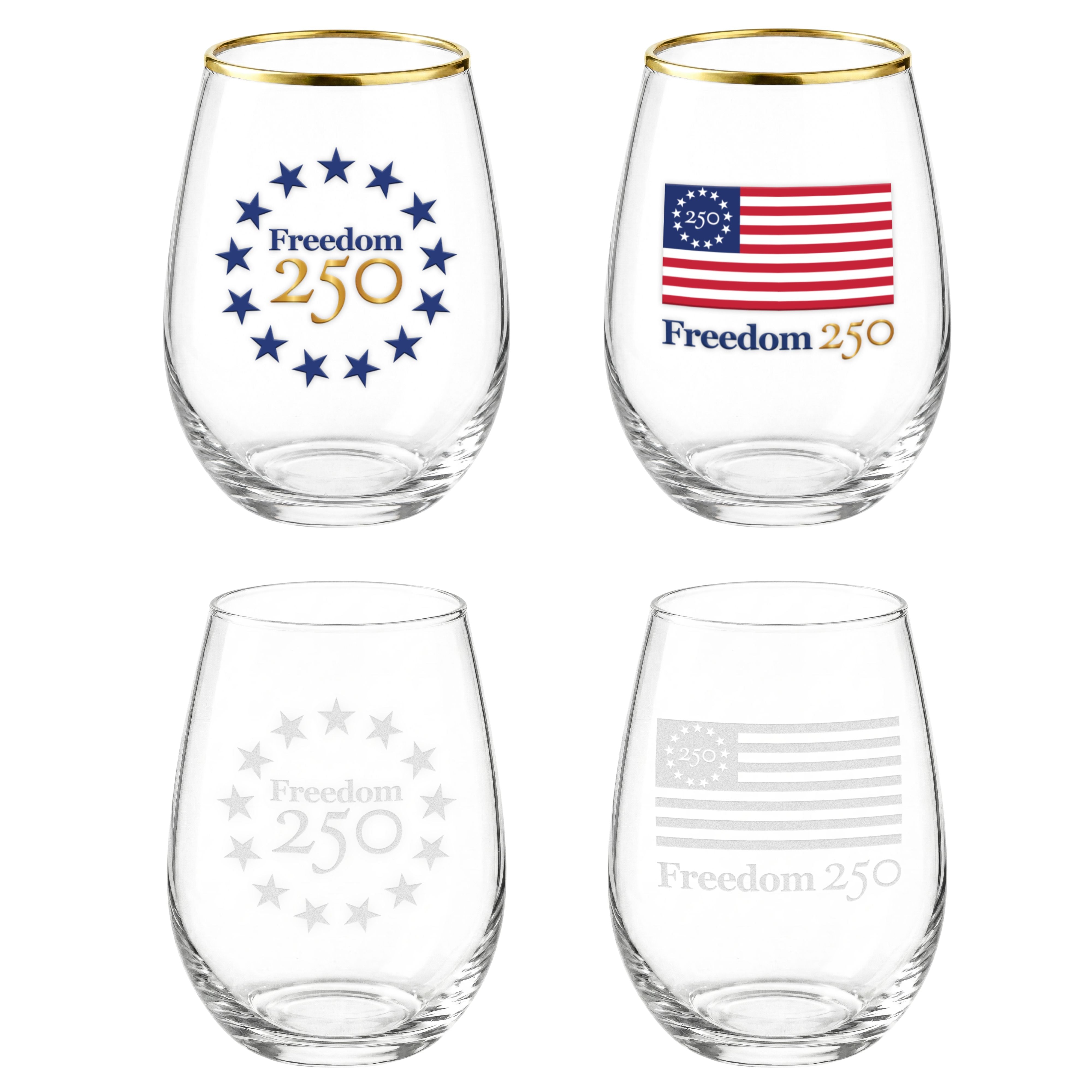 Designed to mark a once-in-a-generation milestone, these Freedom 250 stemless wine glasses offer a timeless way to commemorate 250 years of American history. Equally suited for entertaining, gifting, or everyday use.
