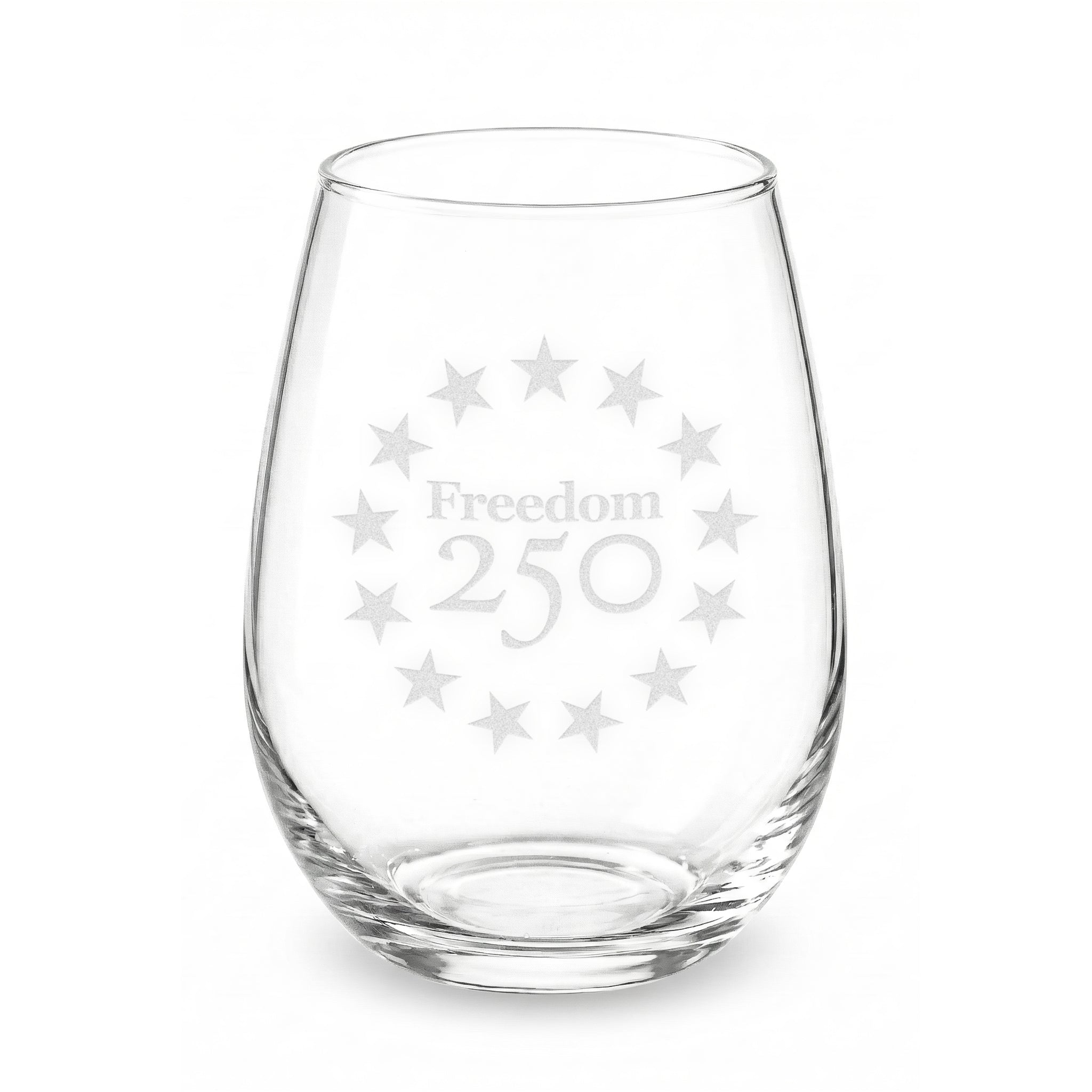 Freedom 250 Commemorative Etched Stars Stemless Wine Glass